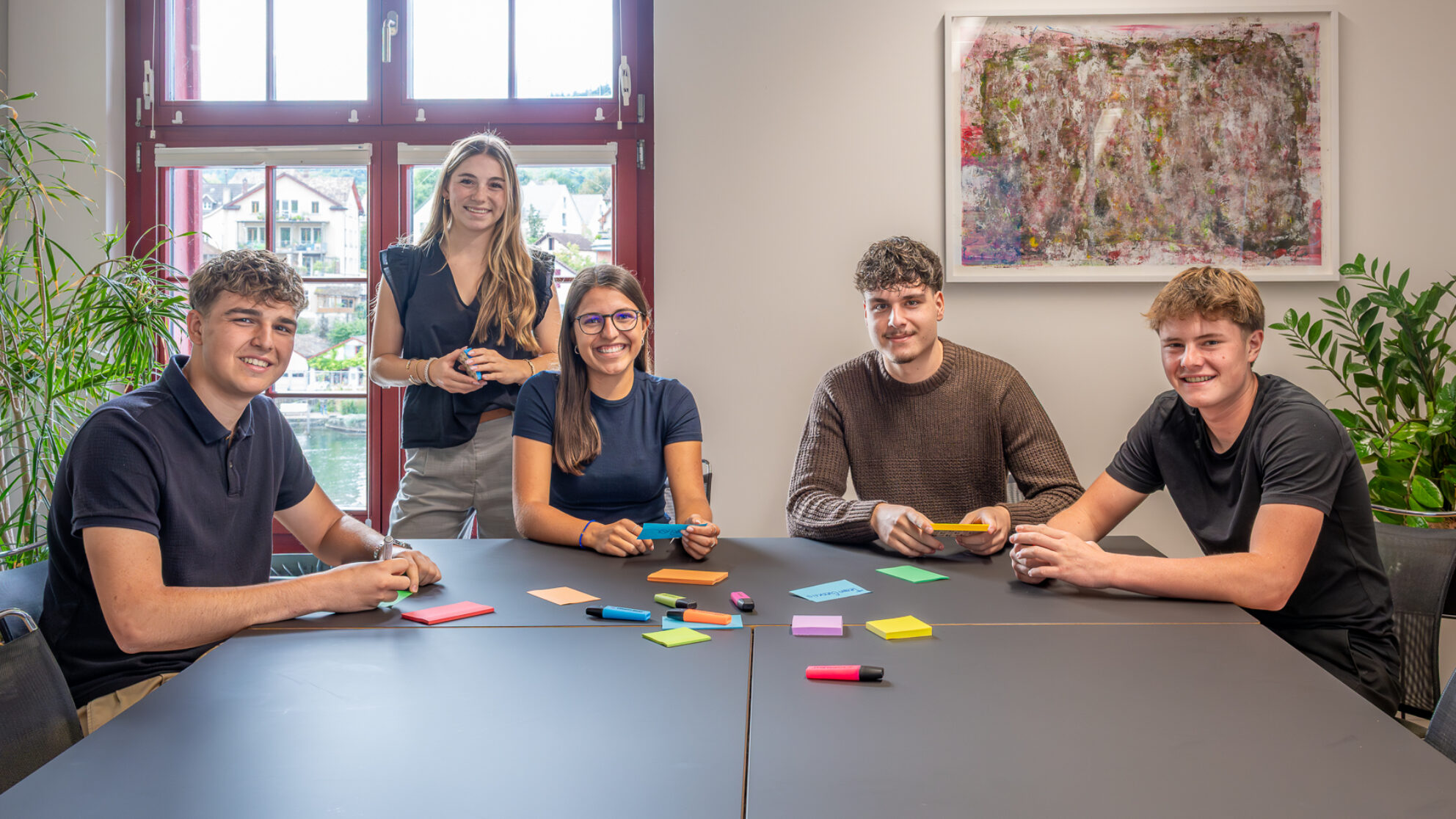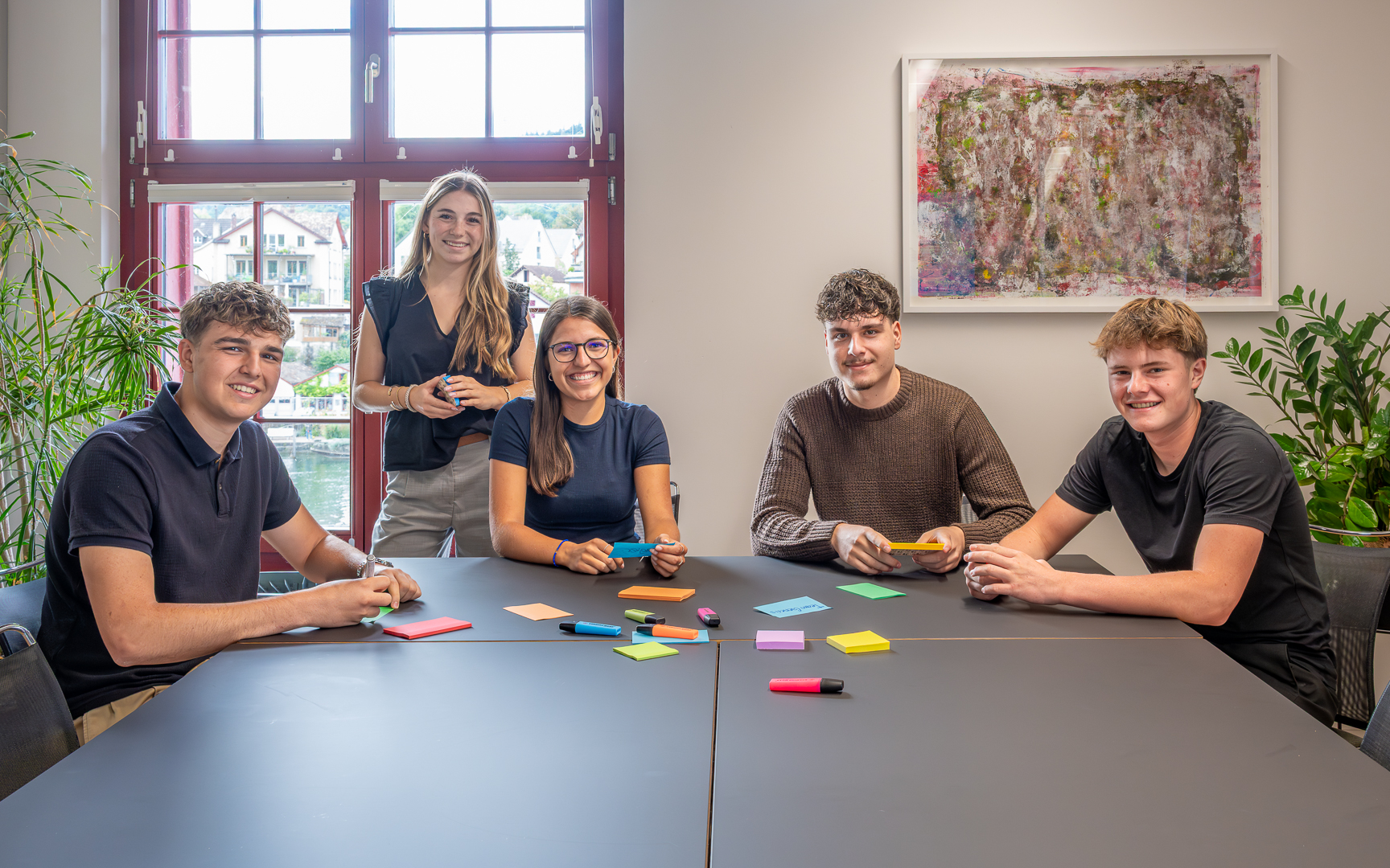 Das heisst nicht, dass wir alles schon können müssen. Wir lernen Schritt für Schritt, was wichtig ist. Wenn wir mal nicht weiterwissen? Dann sind Bettina und Patrik da – unsere Ausbildner, Ruhepole und manchmal auch Rettungsanker. Sie haben Ahnung und verlieren nie die Nerven, auch wenn wir mal den Überblick verloren haben. Für alles andere gibt’s uns: Fünf Lernende, die zusammenhalten. Wir zeigen dir, wie’s läuft.Spoiler: